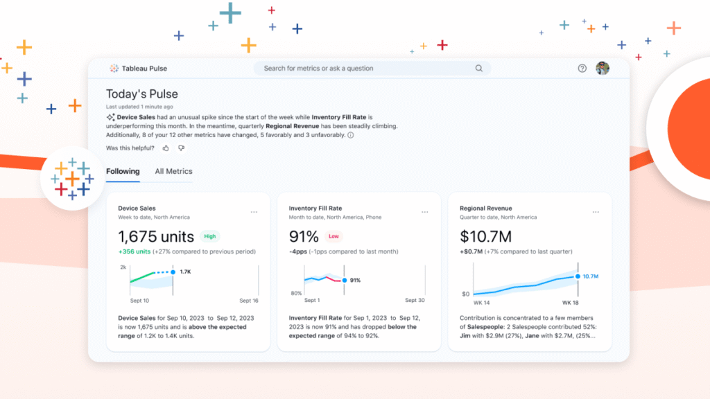 Tableau is making data easy to understand and use, thanks to AI features like Tableau Pulse and Tableau Agent. These tools turn complex data into simple, plain-language insights and deliver them right where people work.