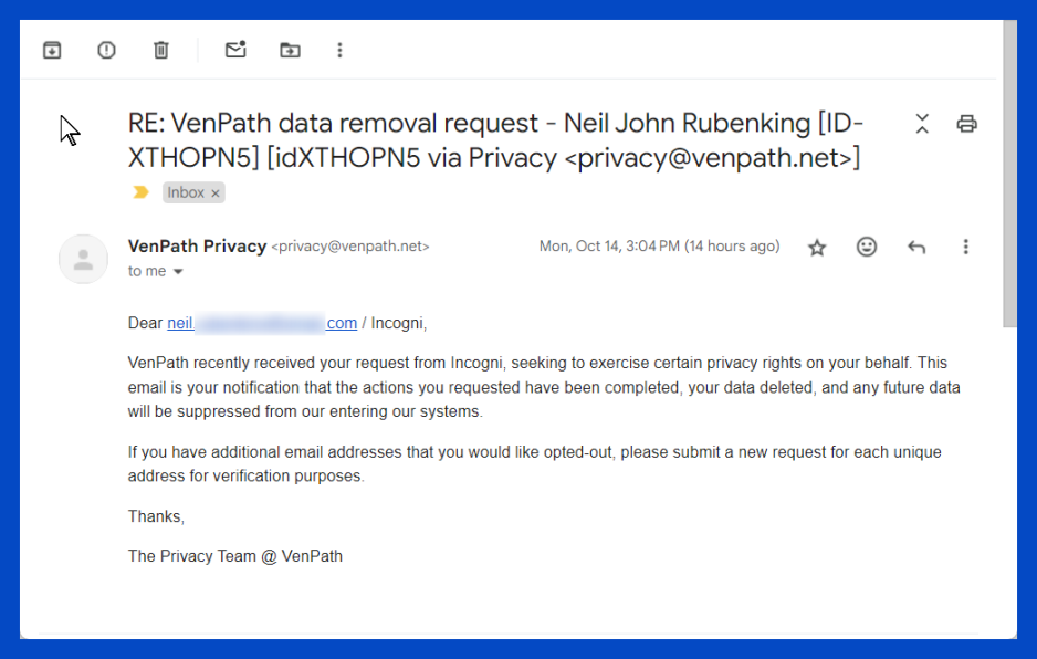 And it doesn’t stop there. Incogni keeps working in the background, sending out new waves of removal requests regularly. So your privacy stays protected over time, not just for a week or two.