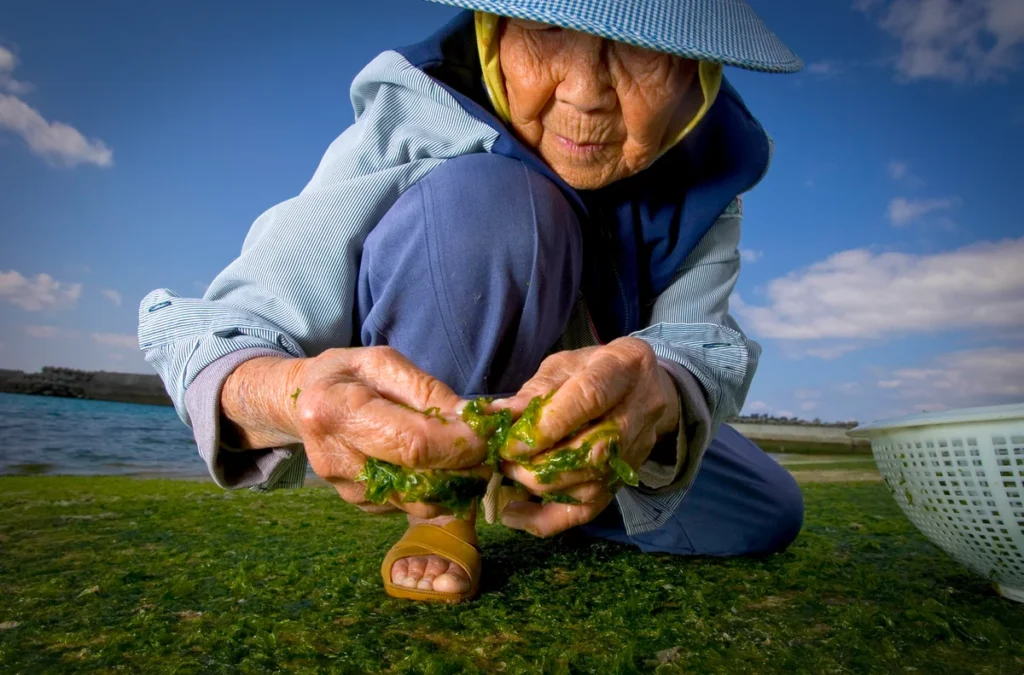 Finally, they practice hara hachi bu. This is a reminder to stop eating when you are 80% full. Their diet is rich in sweet potatoes, soy, and seaweed.