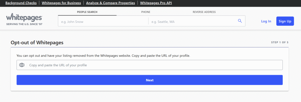Now, open a new browser tab and go to this page: whitepages.com/suppression-requests