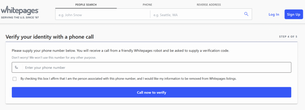 Here’s the slightly annoying part: Whitepages makes you verify your request with a phone call. They say it’s to confirm you’re legit, but it also makes it harder to opt out, which probably works in their favor.